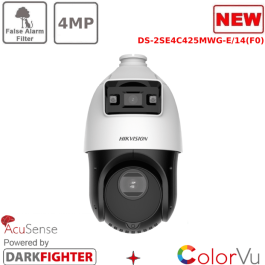 DS-2SE4C425MWG-E(14F0) Hikvision TandemVu is a dual 2 in 1 camera supporting a 4MP pan tilt zoom camera with 25x optical zoom and secondary 4MP fixed lens ColorVu bullet overview camera. The supplementary bullet camera provides a large area overview whilst the PTZ supports long distance viewing and usual PTZ patrols or presets. Can filter tragets based on human and vehicle classifications