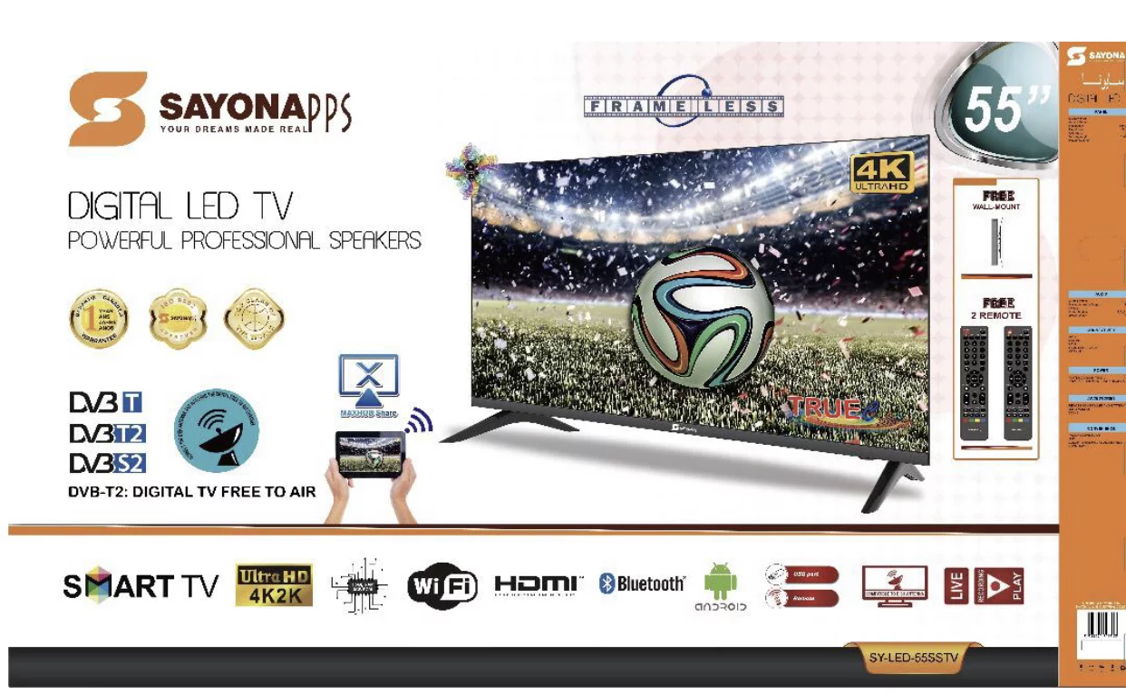 Perfect for home entertainment, the Sayona SY-LED 55 combines advanced technology with style and versatility.